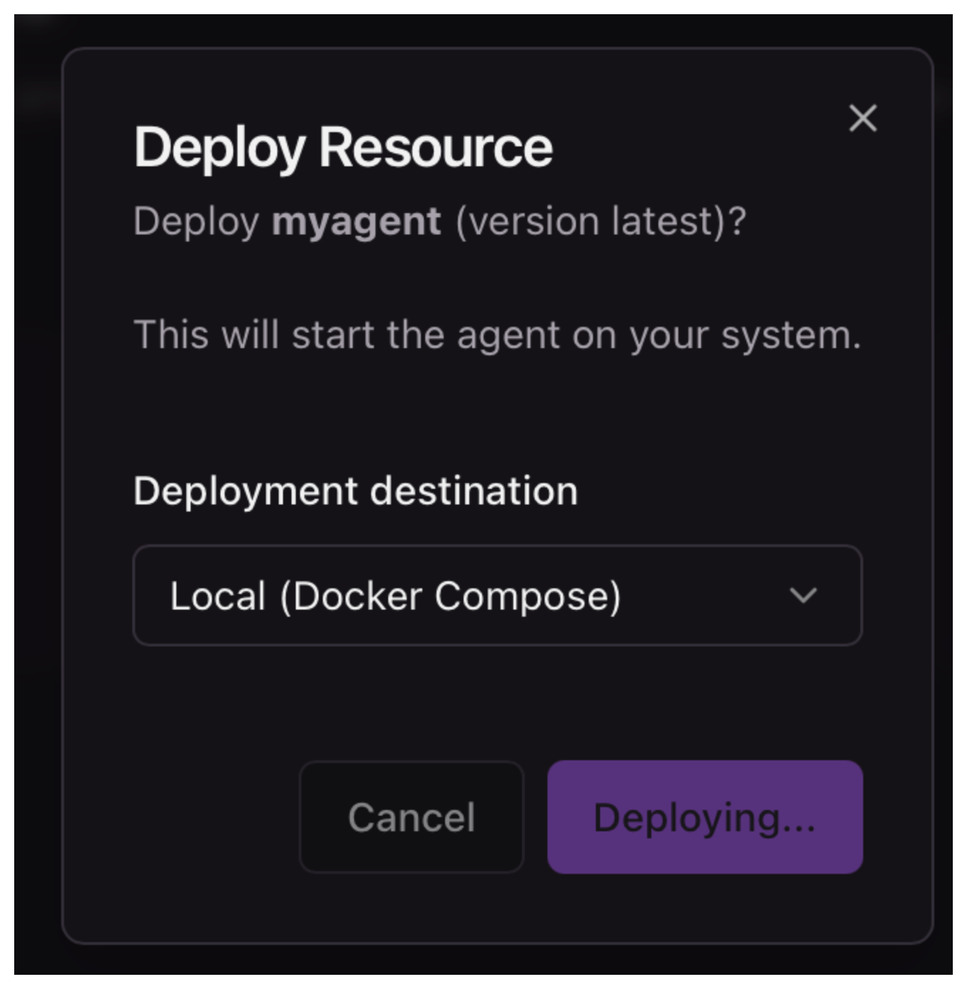 Local deployments spin up Docker containers on your local machine from images that exist on your machine or that can be pulled from the image location reference that agentregistry points to.