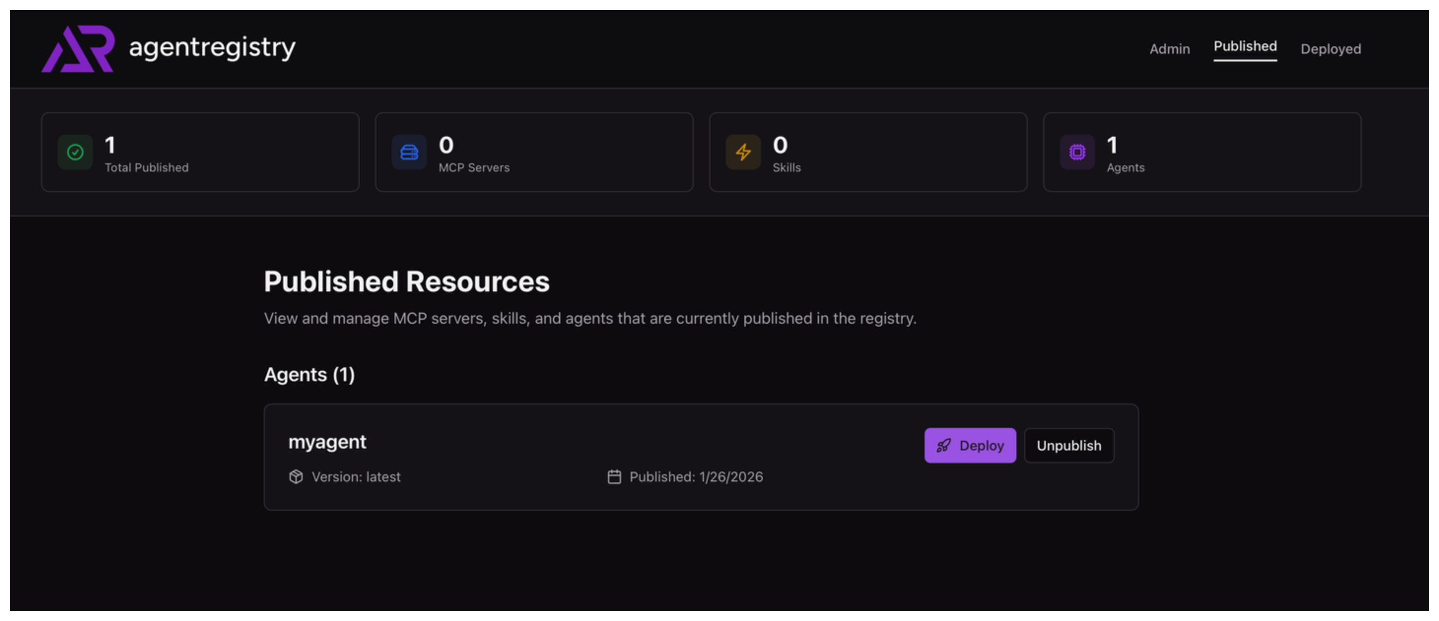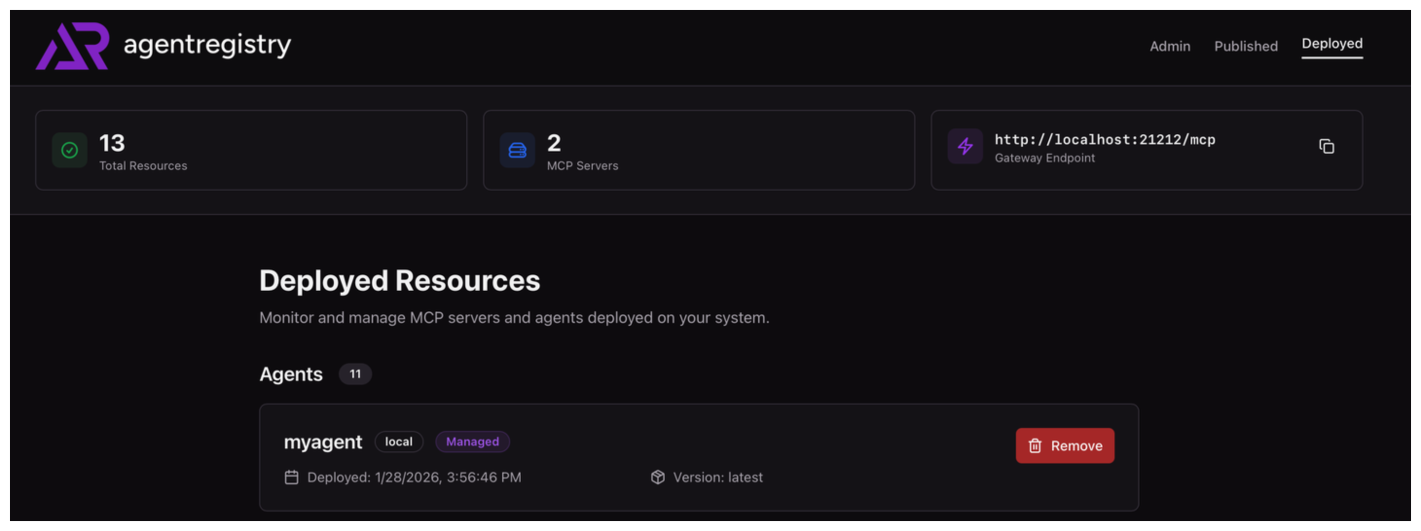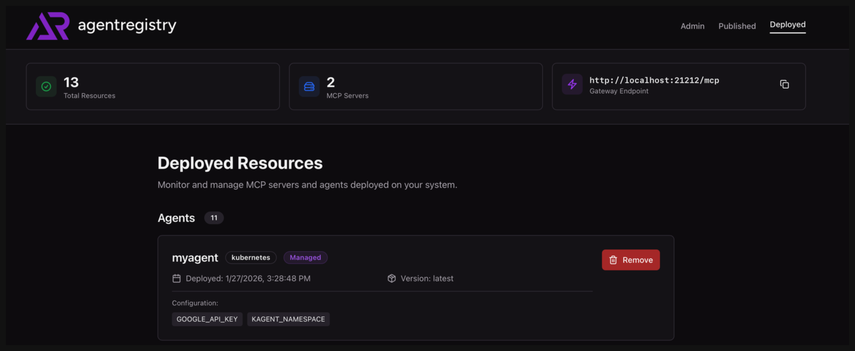 1. Open the agentregistry UI and navigate to the Deployed view.